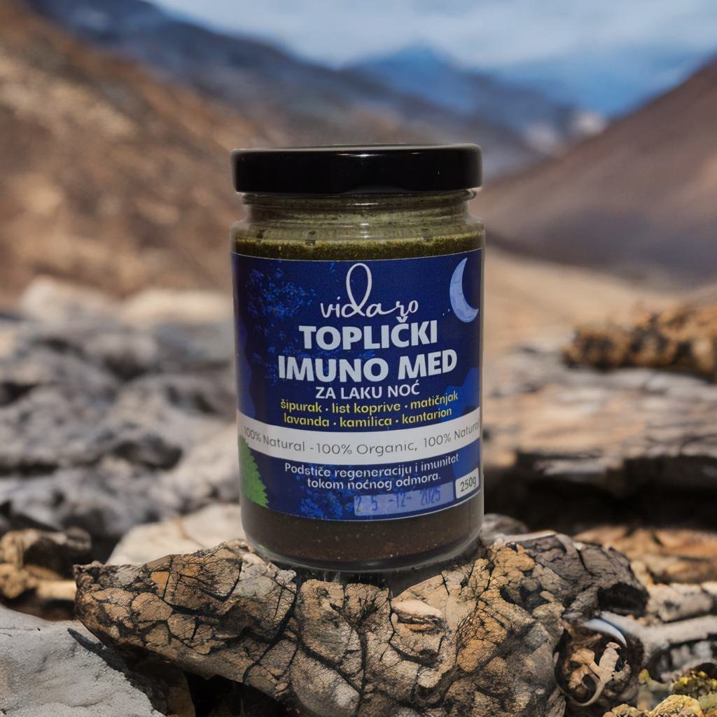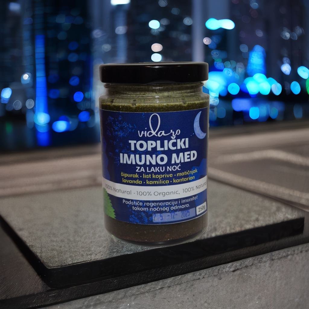 Toplički imuno med za laku noć je pažljivo osmišljena prirodna mešavina namenjena večernjoj rutini, odmoru i blagoj podršci imunitetu tokom sna.